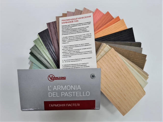 Кольори в цьому каталозі є зразком. Колір може відрізнятися в залежності від деревини, кількості і способу нанесення продукту.