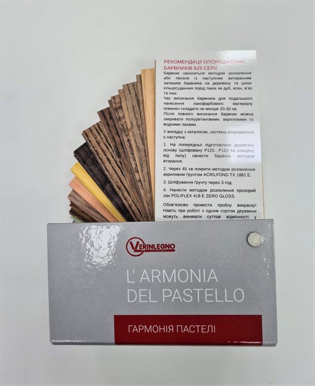 Кольори в цьому каталозі є зразком. Колір може відрізнятися в залежності від деревини, кількості і способу нанесення продукту.