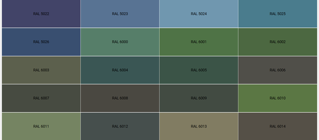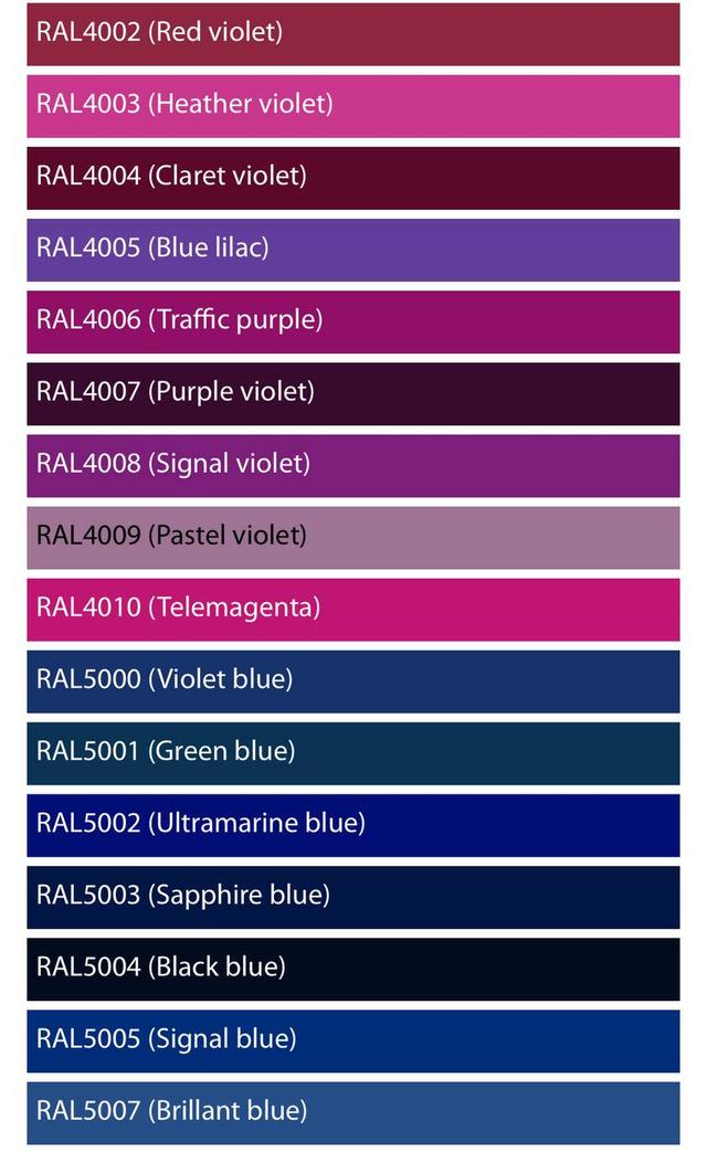RAL K7 - каталог (карта кольорів) - кольорова гамма, палітра, стандарт для виробників лакофарбової продукції
